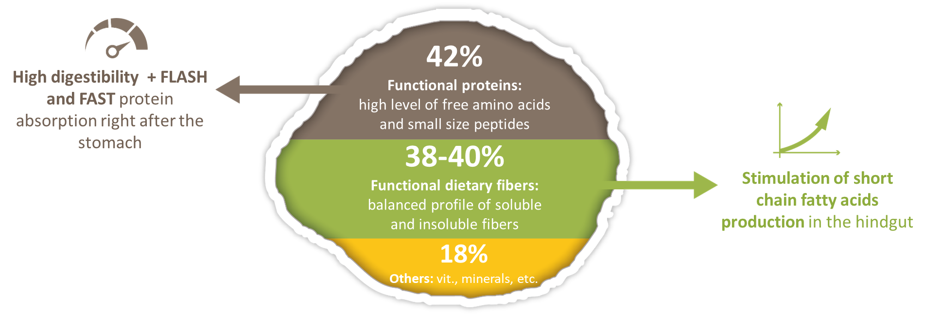 The kinetics of protein digestion is crucial, especially for the immature piglet around weaning. It refers to the speed at which proteins are broken down and absorbed by the body. The faster and more efficiently this process occurs, the better it is for the piglet’s growth and health.
