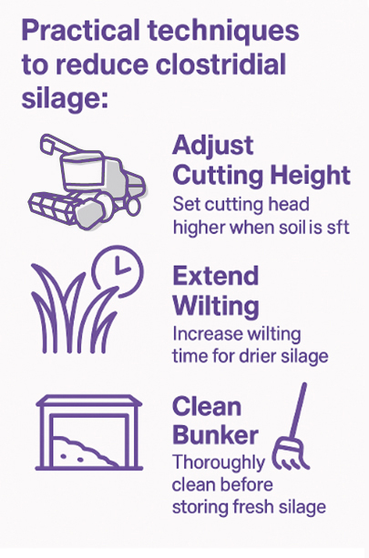 - Extend wilting times for drier silage, reducing clostridia’s opportunity to flourish