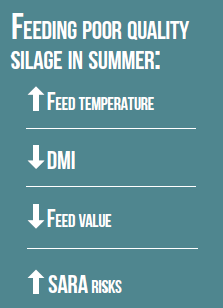 When ensiled forage represents a major part of daily feeding, it’s essential the silage produced is of the highest quality possible. Poorly fermented and preserved silages are often of lower feed quality and tend to heat considerably at feedout and, as such, animals will avoid eating this silage. Moreover, aerobically unstable silages help create an ideal environment for natural populations of undesirable yeast and mold to proliferate, lowering both nutritive values and palatability while also significantly increasing dry matter (DM) loses. Heating silage could see its nutritive value decrease by as much as 16% before molds become visible (Borreani et al, 2018) and DM losses can be more than 15%. Poor quality silage is also prone to higher levels of some mycotoxins such as deoxynivalenol, which has negative effects on rumen microflora and will upset the microbial balance in the rumen. As a result, the already stressed animal will be placed in further danger of Sub Acute Ruminal Acidosis (SARA) development.