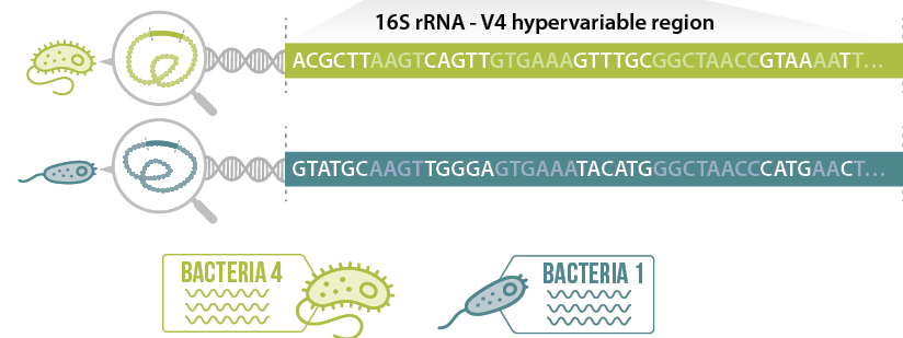 To describe the microbial composition of gut microbiota using sequencing strategy it is not necessary to sequence the full metagenome. A common practice is to target a fragment of the bacterial genome, which is used as a marker or a sort of ID card of a bacteria. This approach, called amplicon sequencing or barcoding, drastically reduces the cost and the time of analysis