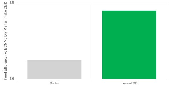 As a result, dairy performance was improved with the supplementation of LEVUCELL SC without impairing milk solids (no dilution effect):