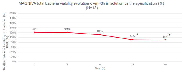 Lallemand Stable Suspension also improves bacteria viability once mixed. After 48 hours, MAGNIVA forage inoculants will still be at least 90% product specification, which is within the margin of error for the method used to count bacteria. Improved viability means contractors and producers can be more confident of the product’s efficacy if a breakdown or any other delay in harvesting occurs.