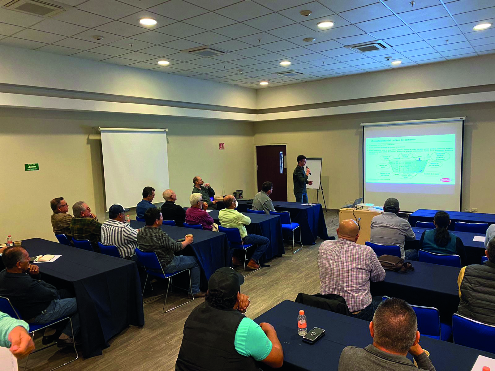 In December 2022, the Lallemand Animal Nutrition aquaculture team and a local distributor held a series of five technical seminars in Sonora and Sinaloa, Mexico, for shrimp farmers and feed manufacturers. This was a great opportunity to discuss the use of microbial-based solutions to address the challenges of shrimp farming, as illustrated by practical farm cases shared by local shrimp farmer, Ramon Cota, Farm Technical Support Manager.