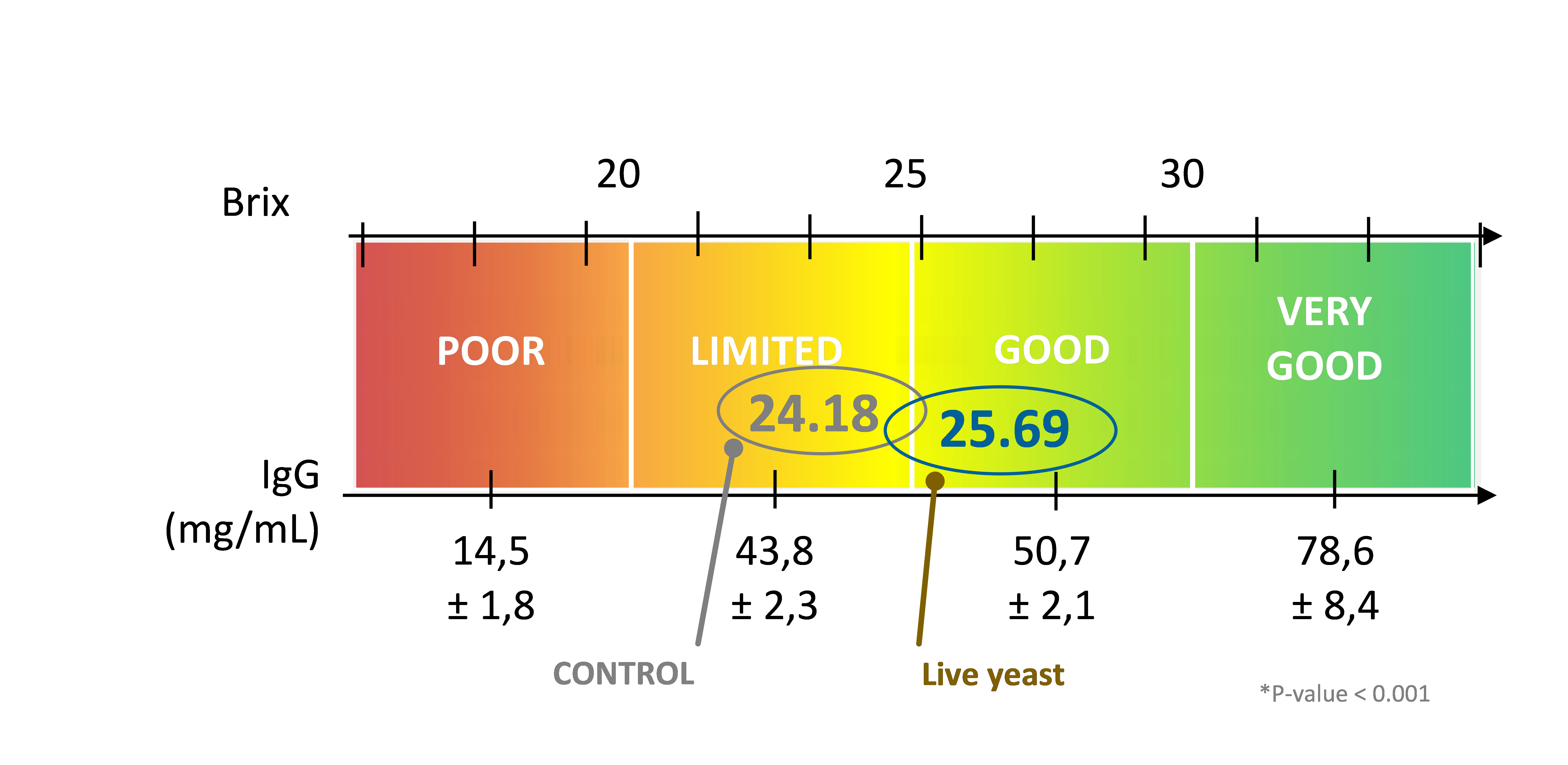 - On average, colostrum from the live yeast-fed sows displayed a significantly higher Brix value than the control sows (P<0.001). This increase was consistently observed in each of the 11 farms (Figure 1).