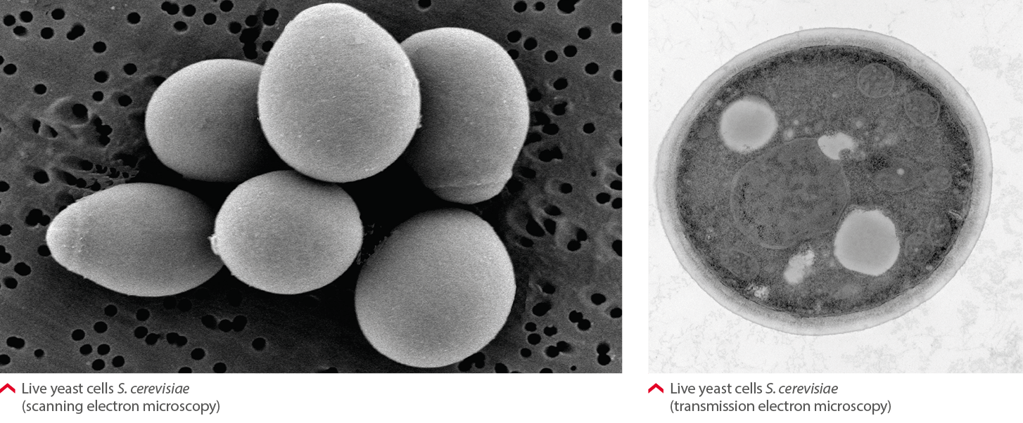 Yeasts are single-cell, eukaryotic microorganisms classified in the fungi kingdom. They are generally around 10μm in size, have a nuclear membrane, a cell wall, and a cytoplasmic content. Not all yeasts are equal. There are about 60 genera and about 1,500 species of yeasts. Only a few are used commercially. Thanks to its exceptional fermentative capacities and nutritional properties, Saccharomyces cerevisiae is the main yeast used in food, beverage, and baking as well as in animal nutrition.