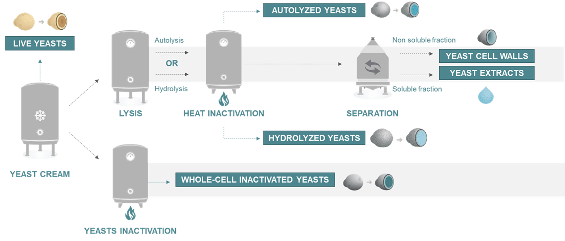 These are yeasts that have undergone an inactivation step. Depending on the process used (chemical, enzymatic, thermal), their properties and their application differ. The choice of strain, combined with the inactivation process, determines the properties and quality of the products.