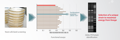 This single strain was selected among thousands of yeast strains through a stepwise screening process based on genetic and functional analysis for its ability to improve rumen function and microbiota balance.