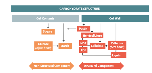 Fiber is a critical component of the plant cell wall and provides both structural support and protection against disease and weather stress. Fiber is resistant to degradation by the digestive enzymes of most monogastric animals. Ruminants, on the other hand, have the ability to release the energy from part of the fiber structure thanks to the activity of the rumen and hindgut microbiota populations. The ruminant and its diverse microbiota population play a unique role in sustainable agriculture through this ability to release energy from fiber without competing with humans for their own nutrition.