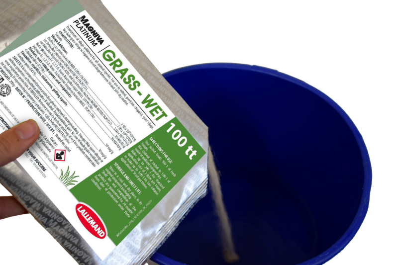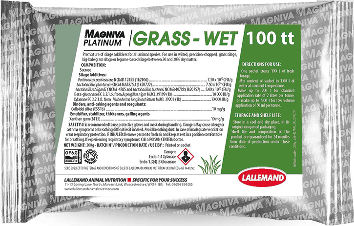 Formulated specifically for the challenge of wetter grass silage and difficult to ensile crops such as clover, lucerne and other legumes, MAGNIVA PLATINUM GRASS WET contains a unique combination of proven bacteria and enzymes