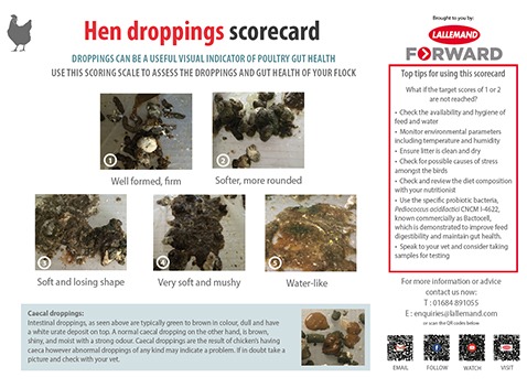 Droppings can be a useful visual indicator of poultry gut health. Use this scoring scale to assess the droppings and gut health of your flock.
